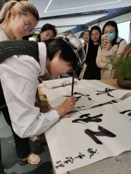 随后,同学们来到了北京东方雨虹防水技术股份有限公司,从早期的中国古代防水建筑设计到现代高科技防水系统,东方雨虹在博物馆内通过一系列展品,展现了防水科技从无到有、从简单到复杂的演变过程。在参观过程中,工作人员还为同学们详细介绍了东方雨虹在防水领域的创新成果。东方雨虹作为现代化企业的代表,一方面坚持防水材料的与时俱进;另一方面采取多元化战略,拓展家居、管道等多领域市场。双向互动,教学相长。城市管理22班擅长软笔书法的田静雯同学现场题字,将作品作为此次活动的纪念,赠送给东方雨虹公司。