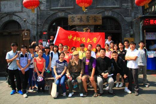午餐期间,袁教授还与同学们分享了他年轻时的经历。袁教授告诉同学们“做人最重要的是三力——体力、智力和意志力,体力和智力是有限的,意志力是无穷的,而无穷的意志力是在积累体力和智力的过程中磨练出来的”,同学们铭记于心,勉励自己前行。午餐结束后,同学们与贾大爷合影告别,继续大栅栏之旅。