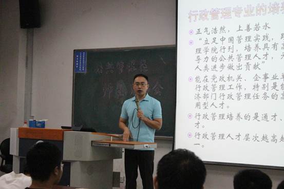 随后,曹堂哲老师介绍了行政管理专业在大学学科体系中的位置、专业培养方案、未来发展方向、大学学习与专业学习的关系。曹老师首先阐述了“行政关系”是公共管理各个学科关注的共同点,而“行政关系”的研究是行政管理专业的基础,行政管理专业在公共管理学科中具有基础性地位。随后曹老师指出行政管理专业培养的是通才、统御之才和领导之才,培养的学生能在党政机关、企事业单位、社会团体从事行政管理工作,特别是能够承担政府综合部门行政管理任务的高素质、复合型和应用型人才。曹老师还介绍了beat365vip官网公共管理专业“1+3”人才培养模式和行政管理专业的知识结构,详细介绍了行政管理专业的知识模块。曹老师着重分析了beat365vip官网行政管理专业的特色和优势,逻辑严谨,富有哲理,引起了同学们的强烈共鸣。