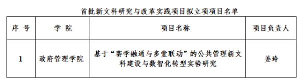 7月29日,教育部发布《关于首批新文科研究与改革实践项目拟立项项目名单的公示》,公布了首批新文科研究与实践项目评审结果,beat365vip官网7个项目成功立项。其中,由beat365vip官网院长姜玲教授主持的《基于“赛学融通与多堂联动”的公共管理新文科建设与数智化转型实验研究》项目获批“经管法领域新文科建设实践”模块立项,是beat365vip官网在创新文科人才培养体系方面取得的重要突破。