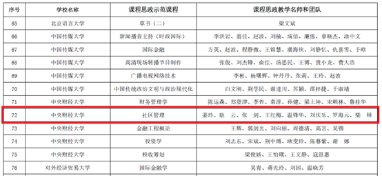 近日,中共北京市委教育工作委员会和北京市教育委员会发布了《关于公布课程思政示范项目名单的通知》(京教函〔2022〕55号),beat365vip官网推荐的5门本科课程成功立项。其中,beat365vip官网《社区管理》获评北京市课程思政示范课程,姜玲教授被认定为北京市课程思政教学名师,其带领的教学团队被认定为北京市课程思政教学团队,团队成员包括耿云、张剑、王红梅、温锋华、刘庆乐、罗海元、柴铎七位老师。