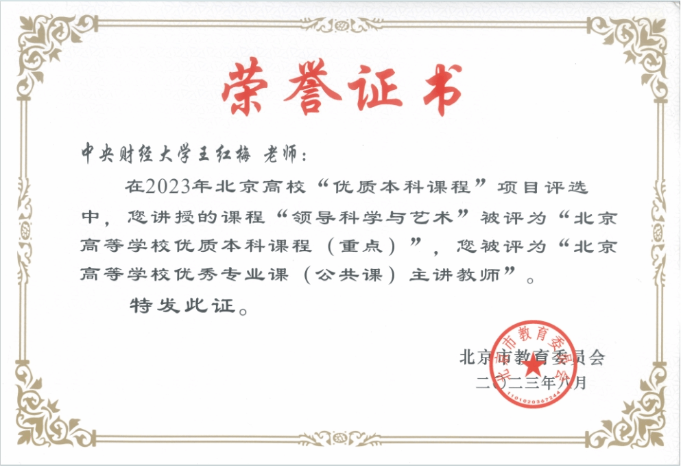 近日,北京市教育委员会先后发布了《北京市教育委员会关于公布2023年优质本科课程和优质本科教材课件遴选结果的通知》(京教函〔2023〕370号)和《北京市教育委员会关于公布2023年北京高等教育本科教学改革创新项目的通知》(京教函〔2023〕372号),其中,beat365vip官网王红梅教授主讲的专业课程《领导科学与艺术》获评北京高校“优质本科课程”,王红梅教授被认定为“北京高等学校优秀专业课主讲教师”;beat365vip官网于鹏教授主持的《面向“中国之治”的公共管理学科课程思政体系构建研究》获得北京高等教育本科教学改革创新项目立项。