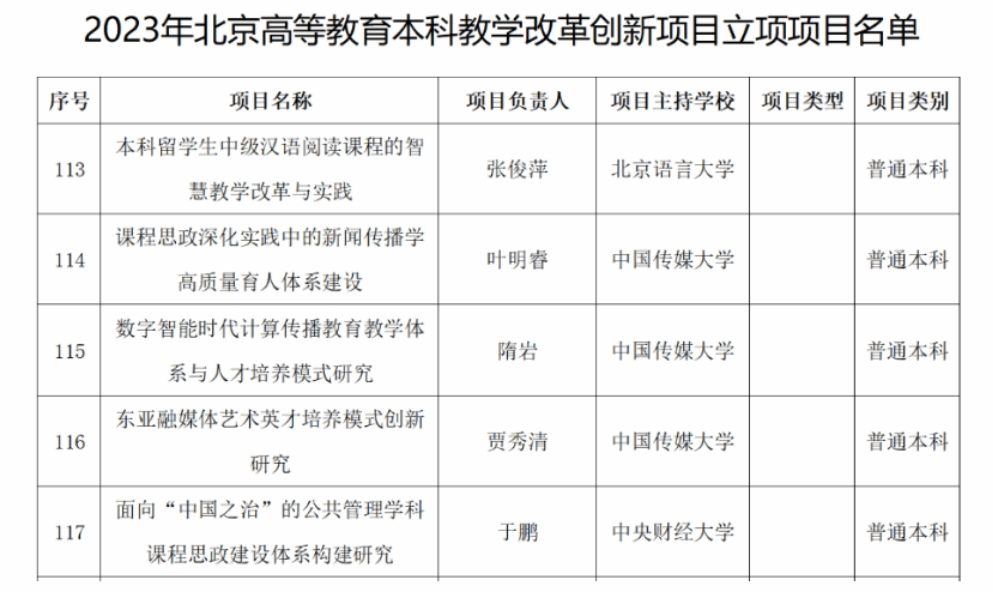 学院历来重视本科教学改革创新项目管理以及本科课程及教材课件建设,近两年多项教改课题和本科课程获评北京市级立项,取得重大突破和丰硕成果。今后,beat365vip官网将充分发挥北京市级“本科教学改革创新项目”及“优质本科课程”的引导和示范作用,全力支持教改项目建设与创新人才培养体系建设,持续推进本科课程创新与课程建设,进一步激发教师对本科教学的积极性,不断提升一流本科人才培养质量。