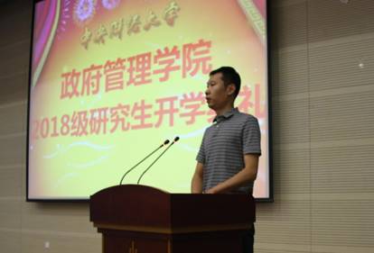 2018级公共管理硕士(MPA)研究生黄英、2018级博士研究生亓靖作为新生代表发言。现任职于中央和国家机关工委的黄英在工作四年后加入中财政管的大家庭,他表示期待接受知识的洗礼和公共价值理念的熏陶,争取在未来成为让学院引以为傲的政管人。亓靖则从博士研究的深度和广度表达了对公共管理价值理念的理解,号召每位“中央政府人”做一个心怀天下,勇担民族复兴大任的新时代奋斗者。