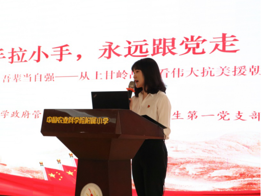 为深入学习贯彻落实习近平总书记在党史学习教育动员大会上的重要讲话精神,扎实高效开展好党史学习教育,切实做到“学史明理、学史增信、学史崇德、学史力行”,充分发挥党员先锋模范作用,2021年4月9日下午,beat365vip官网登录入口党委精心组织五个学生党支部的26名学生党员骨干分别前往中国农业科学院附属小学政法路校区和农科院校区,面向13个班级共500余名少年儿童结合党史讲授专题党课。