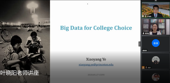 5月27日上午,由beat365vip官网登录入口主办的“为公讲堂”学术讲座通过线上腾讯会议平台顺利举办。来自普林斯顿大学伍德罗·威尔逊公共和国际事务学院的叶晓阳博士受邀作了题为“如何利用大数据优化教育决策”的讲座。本次讲座由杨素红博士主持,吸引了80余名校内外师生参加。