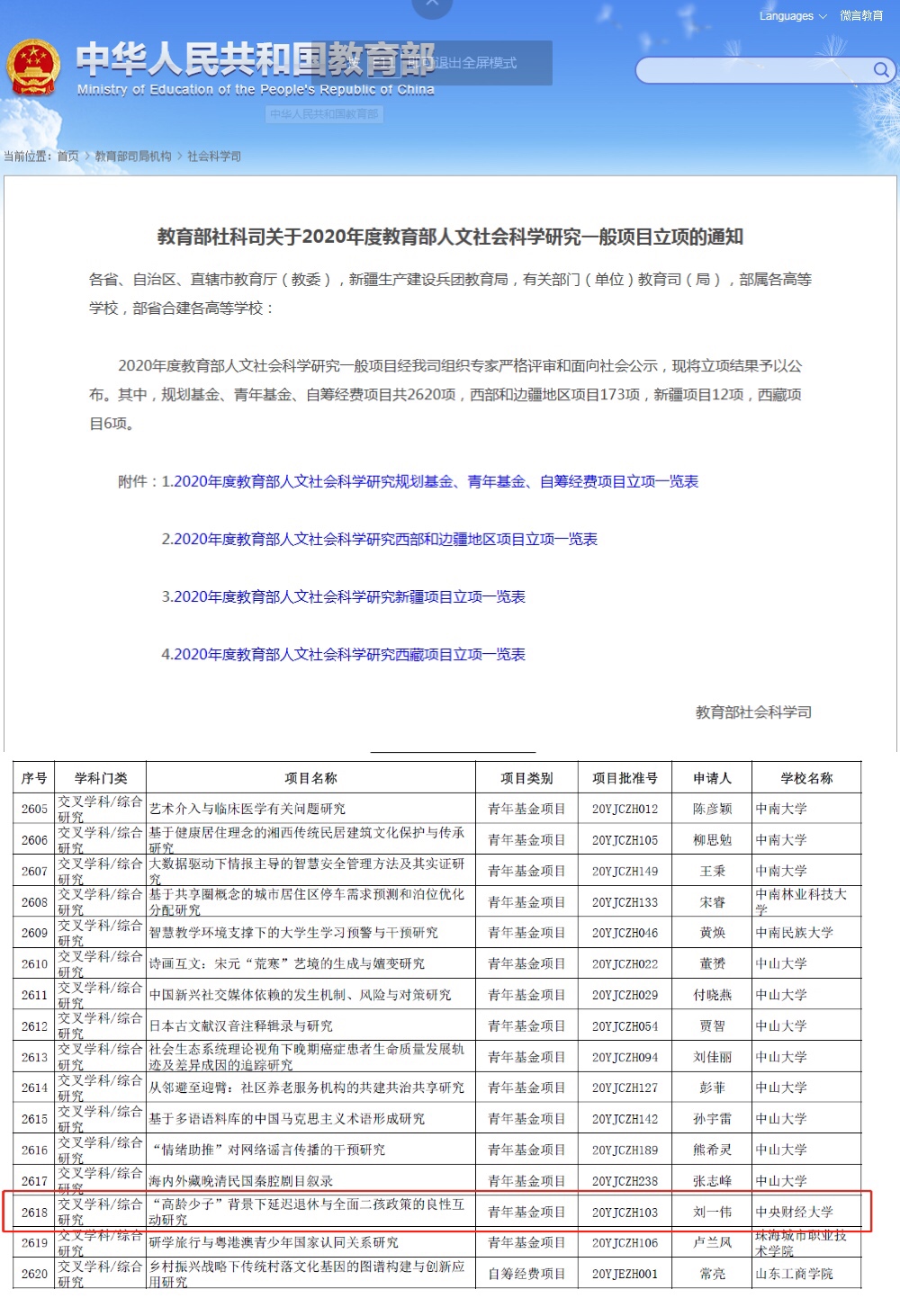 近日,2020教育部人文社会科学研究项目评审结果揭晓,beat365vip官网刘一伟博士主持的《“高龄少子”背景下延迟退休与全面二孩政策的良性互动研究》获批青年基金项目(项目批准号:20YJCZH103)。