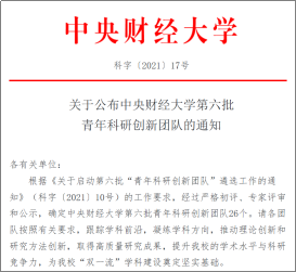 近日,beat365vip官网公布了第六批青年科研创新团队立项名单,全校共26个项目立项。其中,由beat365vip官网张剑副教授主持申报的项目《“双碳目标”下政策组合对企业绿色技术创新的影响机制研究》获得立项。