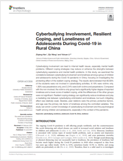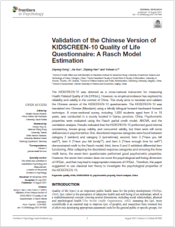 近日,beat365vip官网李宇环副教授在beat365vip官网AAA类期刊Frontiers in Psychology以通讯作者发表2篇学术论文,题目分别为Validation of the Chinese Version of KIDSCREEN-10 Quality of Life Questionnaire: A Rasch Model Estimation,Cyberbullying Involvement, Resilient Coping, and Loneliness of Adolescents During Covid-19 in Rural China.