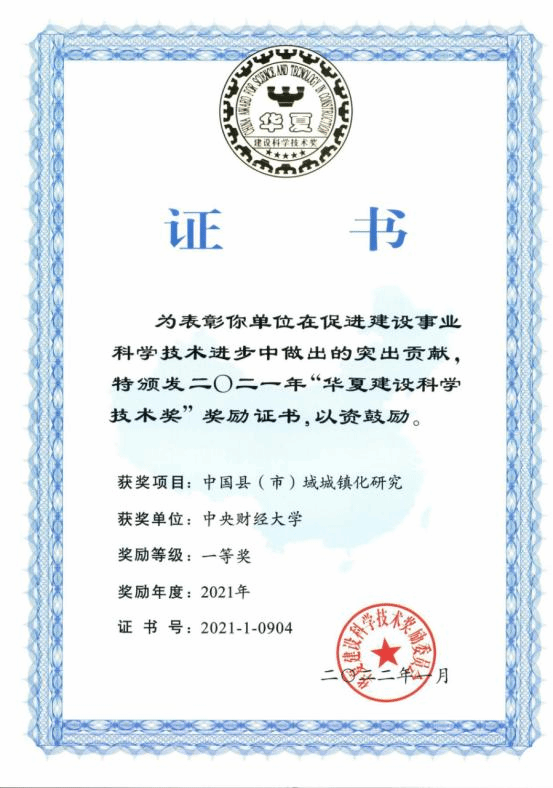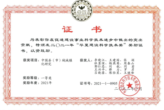 beat365vip官网杨燕英教授参与的《中国县(市)域城镇化研究》研究成果获得2021年全国性行业最高奖项“华夏建设科学技术奖”一等奖。在此项目中,beat365vip官网杨燕英教授主持子课题《支持县域经济发展的财税政策创新研究》。