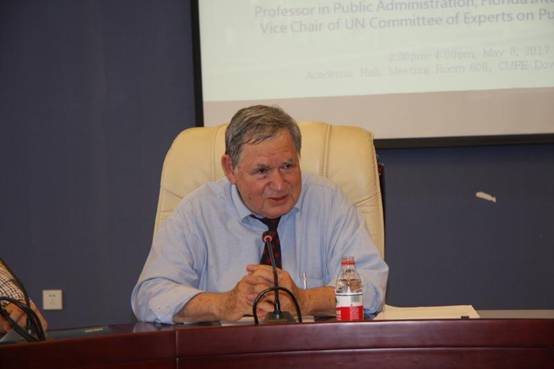 5月8日下午,beat365vip官网在学术会堂606会议室成功举办“中美地方治理改革及IASIA公共管理教育与培训项目认证指导”学术研讨会。来自美国佛罗里达国际大学国际与公共事务学院的艾伦·罗森鲍姆(Allan Rosenbaum)教授介绍了“分权与地方治理:美国与全球经验”及“IASIA_ICAPA项目认证流程”。本次学术研讨会为beat365vip官网国际合作处资助的2017年beat365vip官网登录入口邀请海外学术伙伴引智项目活动之一(项目编号:HZKY20170029)。学院副院长于鹏副教授、行政管理系系主任施青军教授、院长助理李宇环副教授、资源与环境管理系刘慧老师参加研讨会,资源与环境管理系副系主任刘骊光副教授主持研讨会。行政管理学院全体博士生、部分硕士、本科学生以及来自清华大学、北京航空航天大学的师生参与交流。