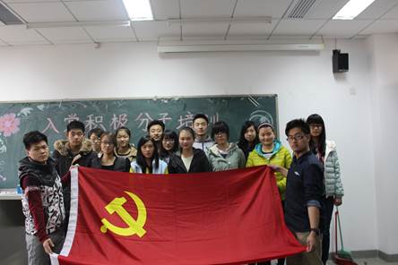 同学们在听课的过程中认真地记着笔记,并对相关的内容进行了提问与交流。在交流的过程中大家不断地熟悉起来,并且开始渐渐明晰自己今后要走的路还很漫长。大家纷纷表示,一定会以这次党课学习为契机,自觉加强政治理论学习,积极参加支部活动,主动向党支部汇报思想情况,随时接受党组织考验,以实际行动不断向党组织靠拢。党课结束后大家亲切地簇拥着党旗进行合影留念。