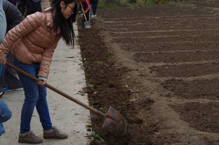 第三组成员则走出校园,以“服务社区”为主题,前往学院志愿基地—爱地敬老院进行了一系列的“爱老敬老”活动。在敬老院中,小组成员积极为菜地除草松土、在菜地里采摘果实并为敬老院清扫落叶。