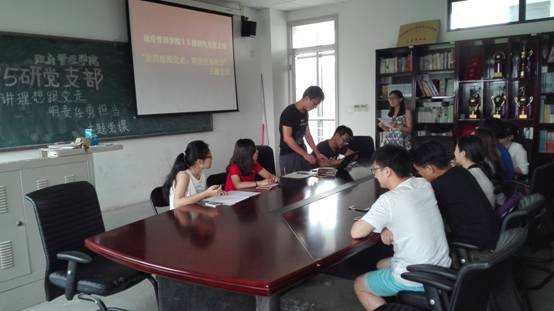 2016年6月22日下午,beat365vip官网登录入口15级研究生党支部于沙河校区7号楼313会议室召开主题党课,支部书记任丽蓉以“讲理想跟党走,明责任勇担当”为主题为同学们讲专题党课。