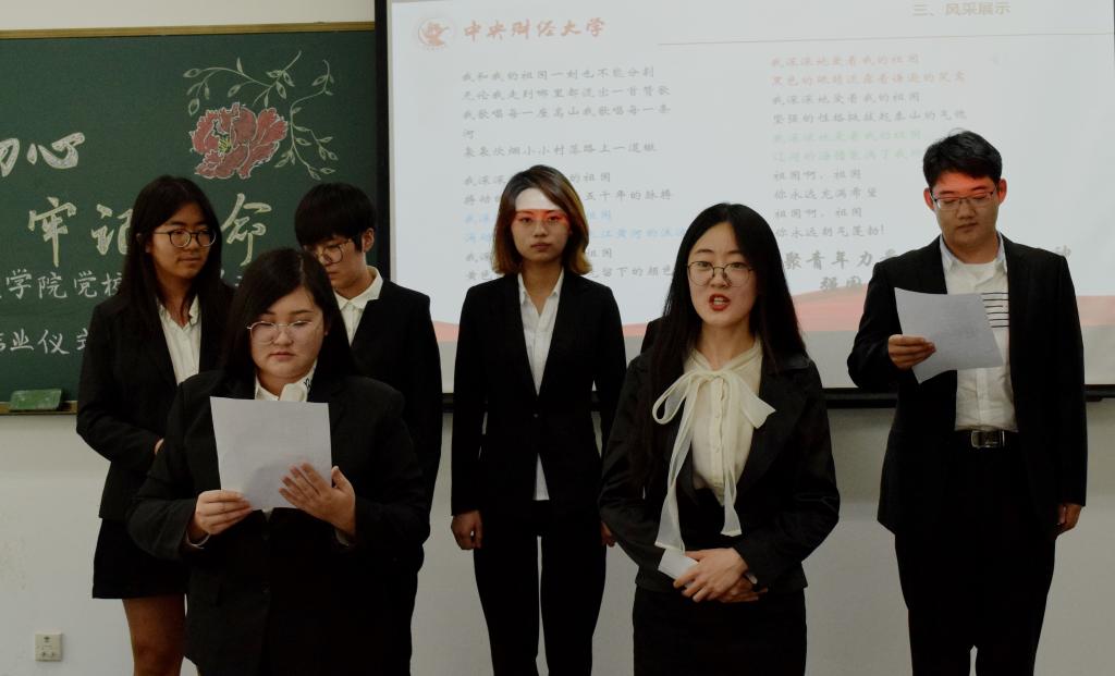 2019年6月12日中午12:30,2019年上半年党校学习成果汇报会暨结业仪式在中财大厦二楼案例教室4正式举行。beat365vip官网登录入口党委委员、副院长姜玲,党委委员李海明,党委组织员黄莎,学生工作办公室、党校办公室主任张小林,团委书记、本科生党支部书记李莎莉,研究生工作办公室副主任张鑫媛,团委副书记刘家琦及2019年上半年党校全体学员出席本次大会。