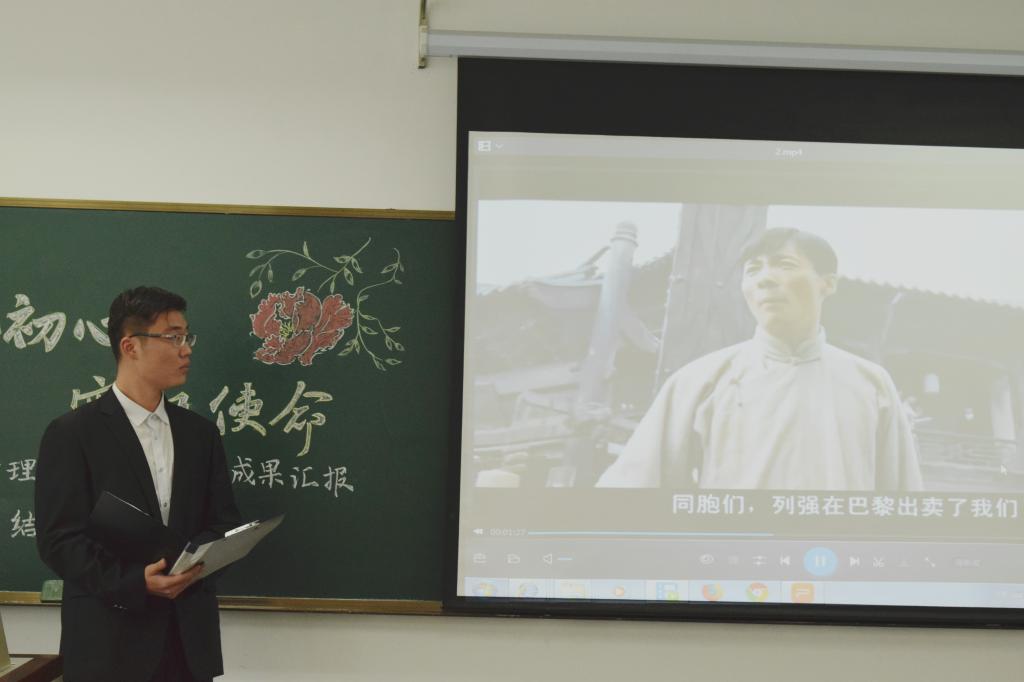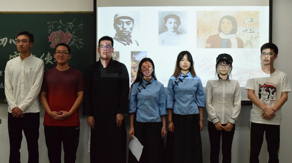 习近平总书记“我将无我,不负人民”的话语直至今天依然振聋发聩,小组沿着“中国境界与中国情怀的历史传承”这条学习主线,走进历史,认识中国古代先贤的“无我”精神内涵,走进时代,学习近代革命对“无我”精神的新诠释,走近青年,阐释新时代青年传承“无我精神”的重要性。时代在不停的变化,但是“无我精神”的传承不应中断。“我将无我”小组其后更是通过《隐形守护者》这一幕情景剧,生动演绎了战争年代从事卧底工作的中共党员的坚持与奉献,即使丢了身份牌,但也依旧坚持初心,为党和国家的胜利奉献自我,这份“无我忘我、却不忘初心”的精神感染了在场所有人,将现场的气氛推向了高潮!