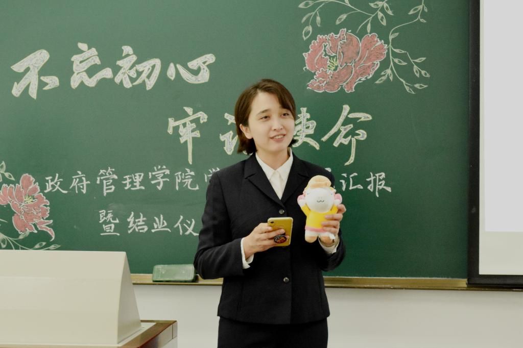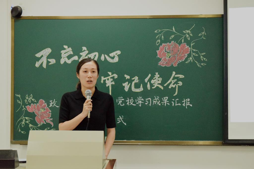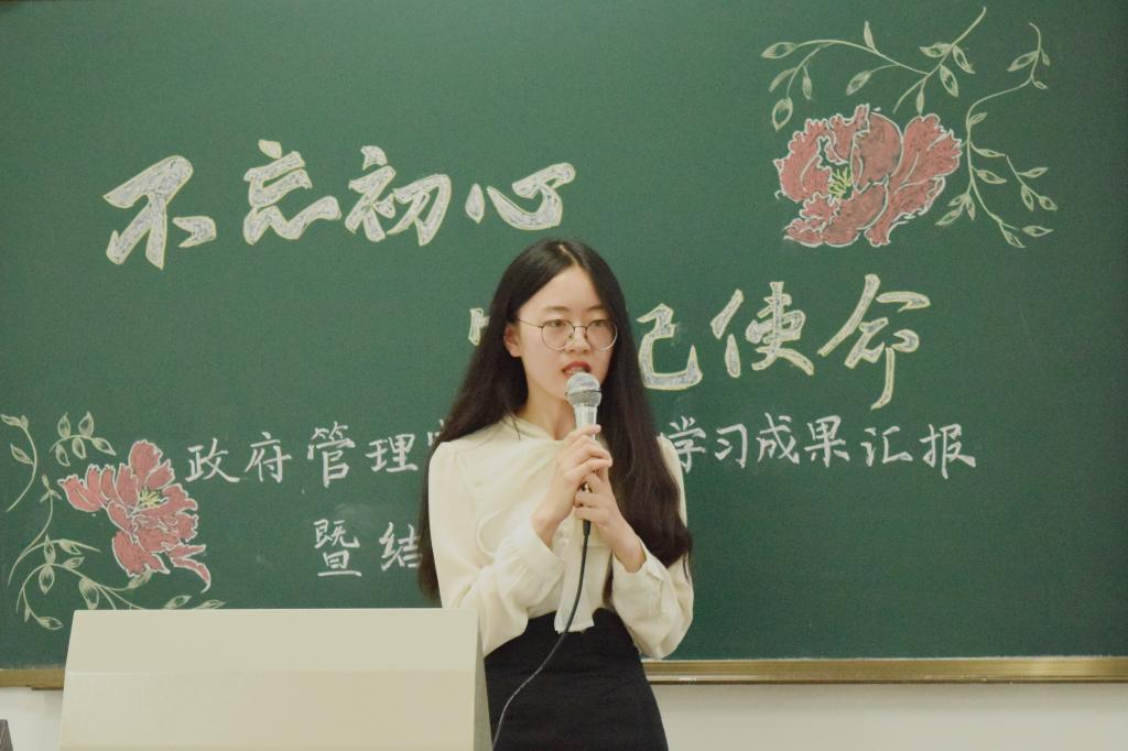 紧接着,姜玲副院长总结讲话。姜老师祝贺大家顺利完成党校培训,能在大学期间参加成果汇报会暨结业仪式是一件难得而又幸运的事,大家要珍惜此次机会,在磨砺和总结中提高自我的理论知识水平,锤炼党性修养。姜老师表示自己在短短的两个小时内,深刻感受到政管青年的蓬勃朝气,感受到大家在党校培训中真正做到实干实学、奋发有为。面对这批优秀群体,姜老师提出了更高的期望,一是要不忘初心、牢记使命,牢牢铭记实现民族复兴梦的历史使命和时代责任;二是要坚定理想信念,争取早日成为一名光荣的优秀共产党员;三是要继续保持和发扬优良作风,在生活中、在学生群体中发挥好先锋模范作用;四是要加强学习,联系时事热点学,联系专业领域学,实现互促互进,提高自己全面素质。