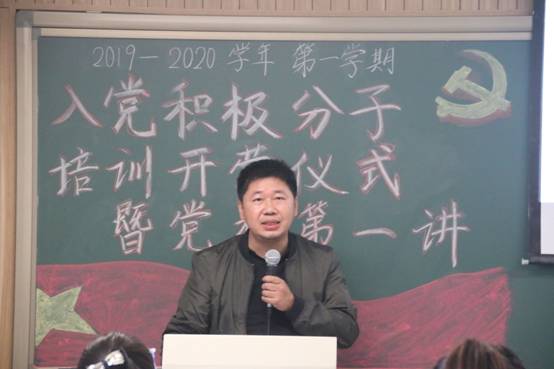 开班仪式后,白云真副书记向党校学员们讲授党课第一讲:《端正入党动机——做一名合格的共产党员》。本次课堂内容共分为“共产党人的内涵”、“早期共产党人”、“共产党人毛泽东”以及“共产党人的精神与修养”四个部分。白老师强调共产党人的利益观,共产党人始终代表的是“利他”和“集体主义”的精神,始终代表着人民群众的集体利益。随后,白老师向学员们介绍了早期共产党人的事迹以及精神品质,鼓励大家向那些始终坚定不移紧紧围绕在共产党周围的革命先辈们学习。之后,白老师向同学们讲述了毛泽东主席青年时期求学的故事,希望学员们不断学习、多读书,尤其是要多读经典,扎根经典来提升精神境界,拓宽思想的宽度。最后,白老师要求学员们从政治修养、思想道德修养、文化知识修养、作风修养和组织纪律修养等五方面全面提升自我,并引用毛泽东主席的名言勉励学员们:“有了学问,好比站在山上,可以看到很远很多东西;没有学问,如同在暗沟里走路,摸索不着,那会苦煞人”,希望大家能够作真学问,学真本领。