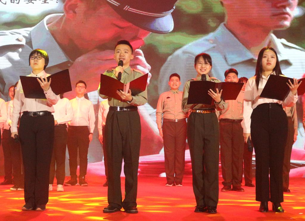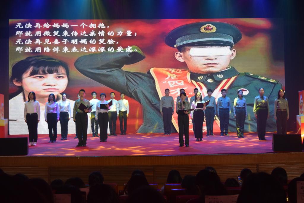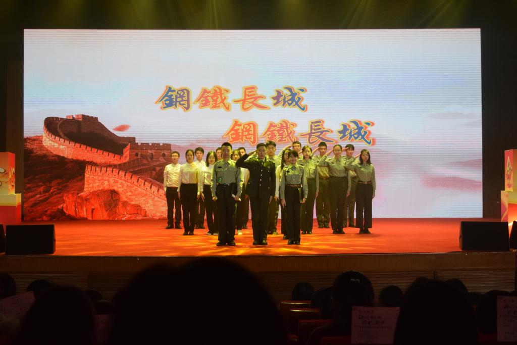 本科生先锋队和龙马长缨社组成的龙马先锋团队吟《钢铁长城》。曾经军旅,便终生军魂,铁骨铮铮亦是热血青春。龙马先锋团队声情并茂的朗诵,将一个个军人楷模热血报国的故事细细讲述,带我们走进一颗颗年轻赤诚、坚韧奋进的心。穿上军装,他们守卫祖国疆土,用鲜血浇灌这片土地的富强;拿起书卷,我们筑牢经济防线,用本领书写祖国的辉煌!