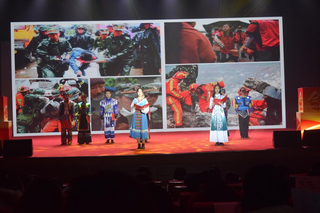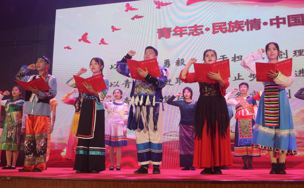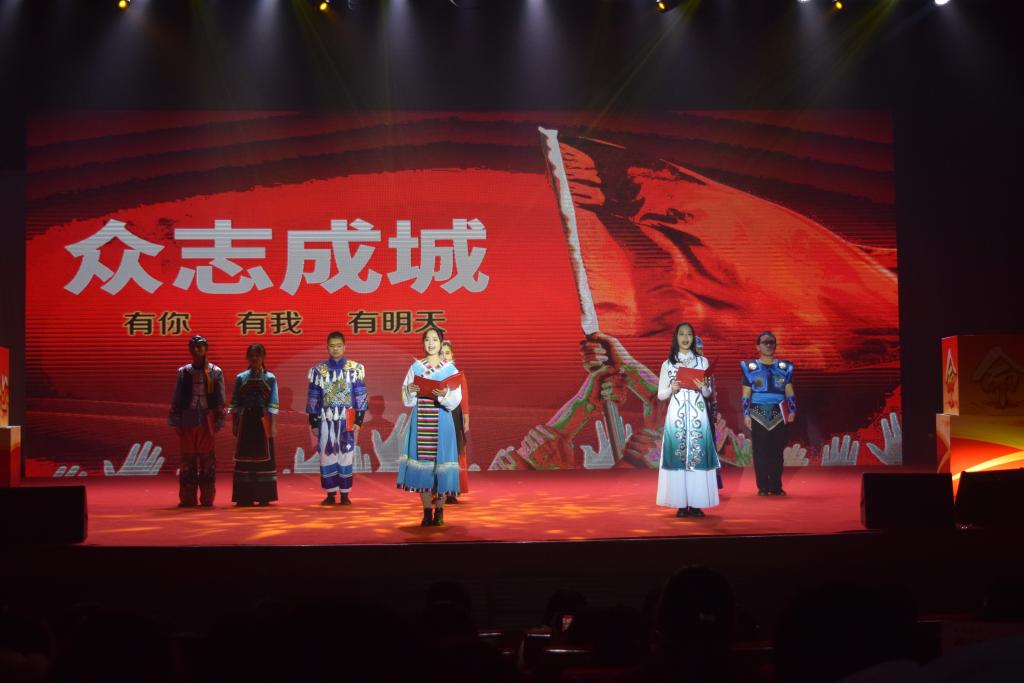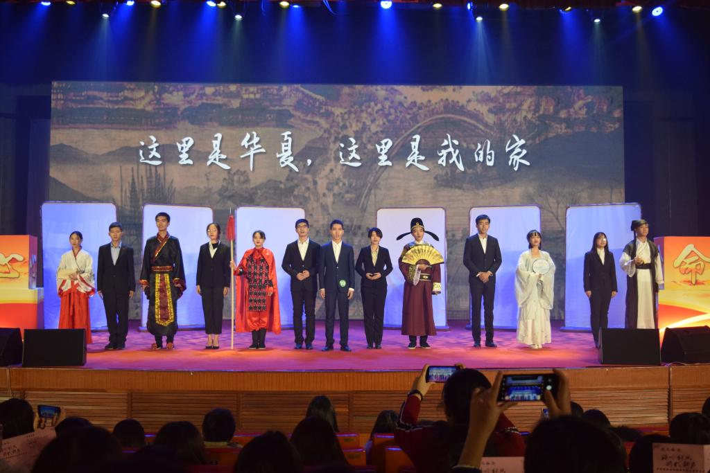 第六支队伍是来自北京学院的丹若赤子团队,他们身着绚丽多彩的民族服装,献上《青春志,民族情,中国梦》。他们来自五湖四海,共同点亮中华天空;他们讲述无惧天灾,歌咏同胞相助相守;他们传递民族温情,肩负使命共话赤子志气。五十六个民族只有一个共同的名字——中华民族,不尽相同的面庞俱是中华儿女。回望历史,我们拥有辉煌的华夏文明;展望未来,我们共同续写中华的传奇!