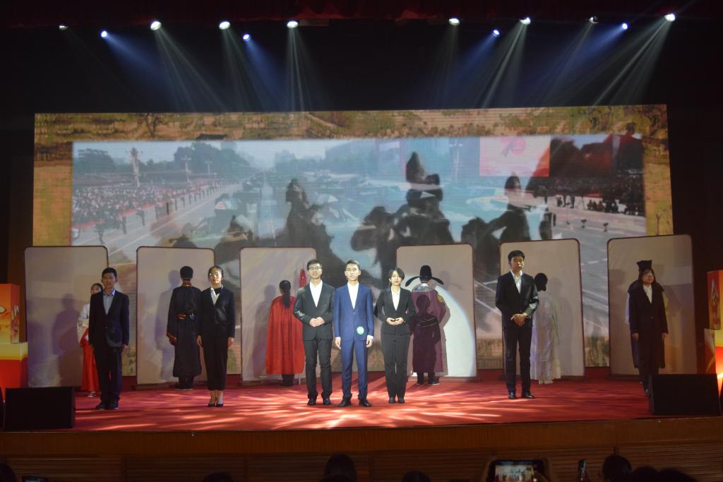 由中国经济与管理研究院、中国金融发展研究院、中国公共财政与政策研究院同学组成的风雅颂团队紧随其后,诵演《中华龙腾,中国圆梦》。他们以丰富精彩的乐器演奏、声情并茂地朗诵,讲述了“中华民族纵使有过风雨飘摇,然赤心不泯,日月可昭;东方巨龙而今壮志未老,待复兴之时,笑傲重霄”,昭示着我中华学子的拳拳赤子之心,散落在祖国大地的星星点点的我的梦,终将托起如银河般闪耀的泱泱中国梦。