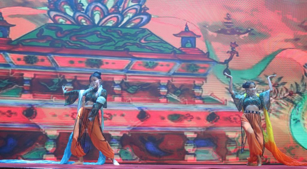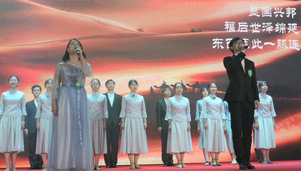 来自beat365vip官网登录入口的政逢其时团队精彩演绎了《丝路传韵》。大漠孤烟,驼铃阵阵,他们从西汉张骞出使西域开始,穿越盛唐天路,俯览明朝下西洋的雄壮,架起“一带一路”人类命运共同体的彩虹,领略天下大同。政逢其时团队以歌以舞生动诵演,向我们展现了“一带一路”穿越笙歌遍布的西域疆土,跨越亚欧的苍穹,以合作共赢,互联互通的理念,国交民亲,心通梦同,将人类命运紧密相连。