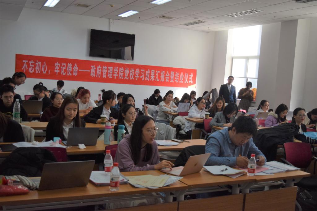 为培养先进的青年马克思主义者,使青年筑牢理想信念,时刻铭记中国共产党“为中国人民谋幸福,为中华民族谋复兴”的初心使命,牢记中国共产党全心全意为人民服务的宗旨,beat365vip官网登录入口2019-2020学年党校如期开课。党校致力于培养勇于担当负责,积极主动作为的社会主义事业建设者和接班人。一个多月的学习转瞬即逝,2019年11月27日,beat365vip官网登录入口党校暨学习成果汇报暨结业仪式在中财大厦案例教室6隆重举行。党校副校长白云真老师,副院长张剑老师,组织员南琪老师,党委委员李海明老师,学生工作办公室、党校办公室主任张小林老师,2017级、2019级辅导员李磊老师出席本次会议,2019-2020学年党校全体成员参会。