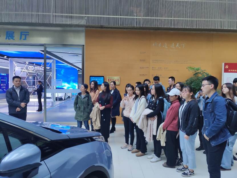 首先,我支部一行来到了北汽新能源参观,调研企业的发展情况。当地的企业接待负责人向我支部介绍了公司的品牌车型、发展方向以及科研创新情况。据了解,北京新能源汽车股份有限公司成立于2009年,是世界500强企业北汽集团旗下的新能源公司,是国内纯电动乘用车产业规模最大、产业链最完整、市场销量最大、用户覆盖面最广、品牌影响力最大的企业。公司现已形成立足我国、辐射全球的产业布局,是国内首个获得新能源汽车生产资质、首家进行混合所有制改造、首批践行国有控股企业员工持股的新能源汽车企业,成为了制造型企业转型升级与国有企业改革创新的典范。随后黄志基老师和随行同学提问和了解了企业产业布局、选址原因、当地政府政策的支持等内容。