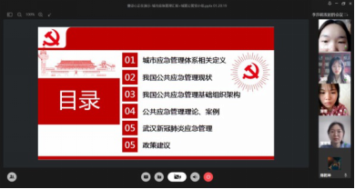 城管公管党小组聚焦城市应急管理体系,介绍其相关定义、我国现状和基础组织架构,阐释了公共应急管理4R理论及国内外案例,并以武汉新冠肺炎应急管理为例进行研讨,提出了要发挥好政府、社会组织和民众等多主体的作用,立足大局、统筹协调,进而推进我国应急管理体系建设。