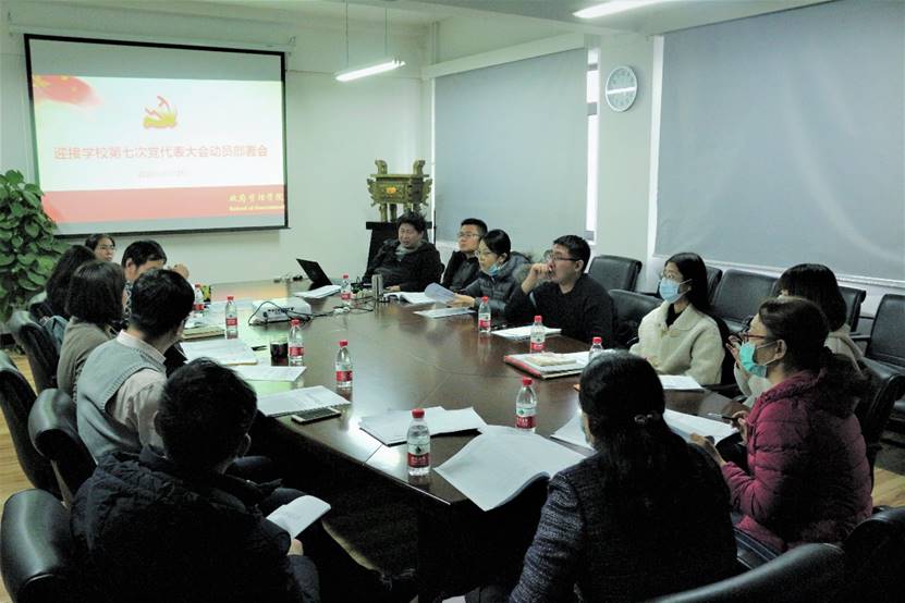 为高举中国特色社会主义伟大旗帜,全面贯彻党的十九大以及十九届二中、三中、四中、五中全会精神,巩固“不忘初心、牢记使命”主题教育成果,早日建成有特色、多科性、国际化的高水平研究型大学提供坚实保障,beat365vip官网登录入口将召开第七次党代表大会。为响应学校党委号召,积极配合落实各项工作,2020年11月25日下午14:00,beat365vip官网登录入口迎接学校第七次党代表大会动员部署会在主教学楼1407会议室举行。会议由beat365vip官网登录入口党委书记吕丽主持,各党支部 书记参与本次会议。