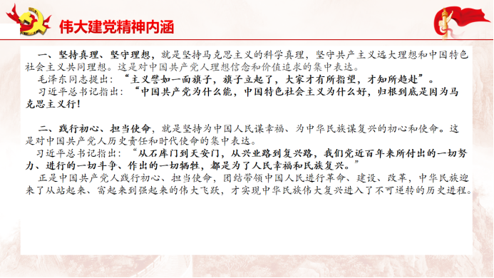 首先,吕丽书记向我们介绍了中国共产党人的精神谱系与伟大建党精神内涵:一是坚持真理、坚守理想;二是践行初心,担当使命;三是不怕牺牲、英勇斗争;四是对党忠诚、不负人民。