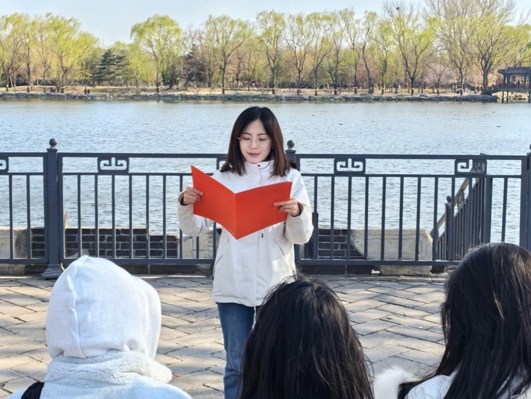 在圆明园遗址前,党支部书记闫新宇鉴史明志葆本色严守铁规树新风为题讲授专题党课。从中央八项规定的出台背景讲起,阐释了中央八项规定的精神内涵,着重解析中央八项规定与中央八项规定精神的区别。她强调,中央八项规定不是一阵风,而是长期有效的“铁规矩、硬杠杠”。支部党员要带头学纪、知纪、明纪、守纪,在学术研究和实践工作中主动弘扬清正务实之风,筑牢拒腐防变的思想防线。