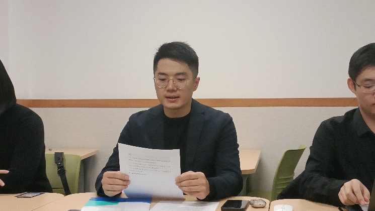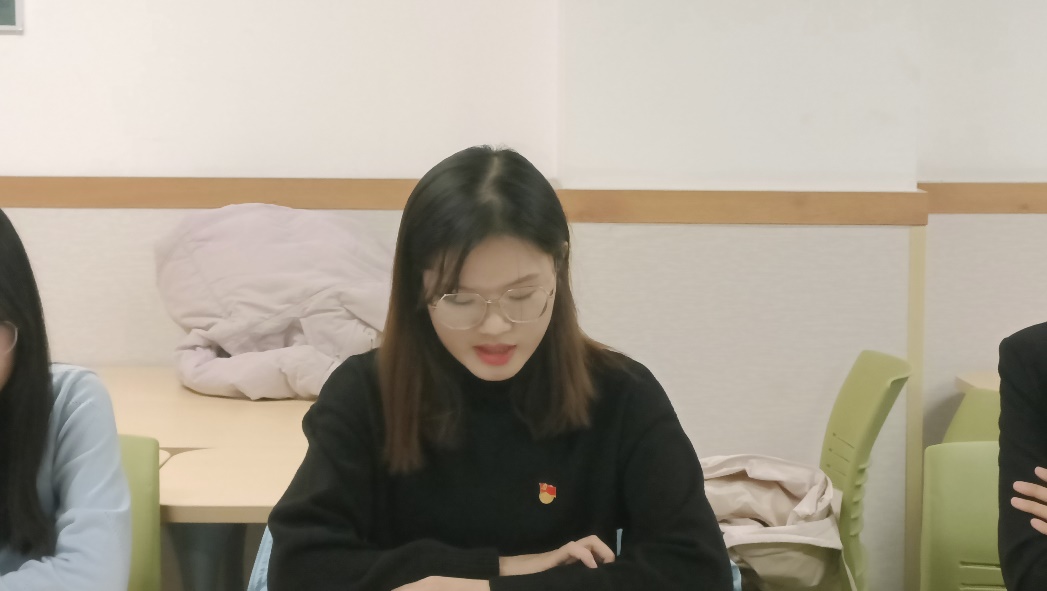 听取会议后,列席会议的李杰、冉淼、牛雪帆三位入党积极分子谈参加会议的感想。