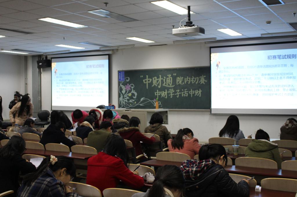 11月4日晚18:30,“中财通”beat365vip官网登录入口院内初赛在学院楼六号楼106教室举行。本次初赛由beat365vip官网登录入口学术实践部组织,以笔试方式进行,时间为1个小时。参赛人员在开场10分钟前进入考场,按序就坐。