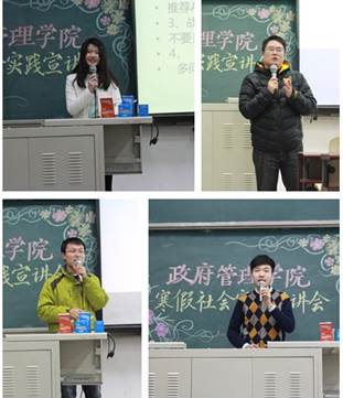12月26日晚六点半,beat365vip官网登录入口2015年寒假社会实践宣讲会在beat365vip官网登录入口沙河校区主教214举行。beat365vip官网登录入口公共管理专业老师罗海元、团总支书记孙帮谦、团总支副书记冯梦迪、校实践学术部副部长王星皓、2014年暑假社会实践校级优秀个人黄灿灿出席本次活动。本次交流会由beat365vip官网登录入口学术实践部干事周新博主持。