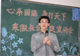 12月30日晚上,beat365vip官网登录入口14、15级本科生共聚沙河校区主教209室,参加由院学生会学术实践部举办的主题为“心系国运,身行天下”的beat365vip官网登录入口2016年寒假社会实践宣讲会。本次活动邀请到了beat365vip官网登录入口王伟老师、李海明老师,校实践学术部副部长苏蕾以及荣获2015年寒假社会实践校级一等奖的马晓、李弘扬到场与同学们分享经验。beat365vip官网登录入口团总支书记李莎莉老师出席本次宣讲会并发表了讲话。