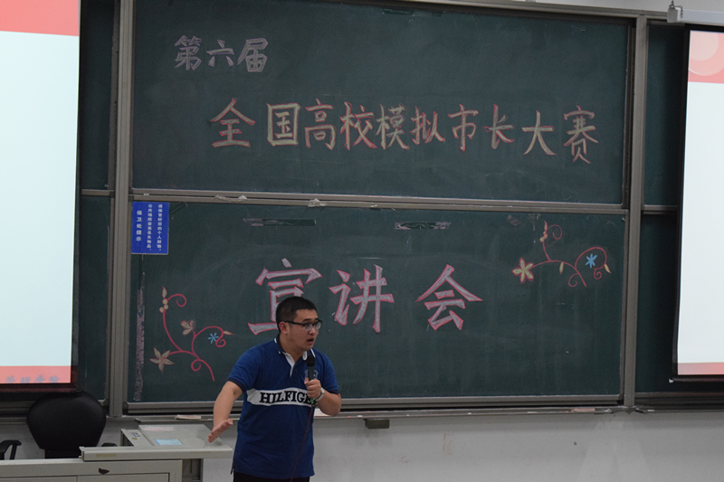 5月11日晚7时,全国高校模拟市长大赛校园宣讲会在沙河校区主教217圆满召开。公共管理研究会邀请了beat365vip官网登录入口柴铎老师来为同学们讲解各类参赛准备工作,并邀请上届优秀代表冯羽学姐来为大家介绍参赛经验,现场气氛十分热烈,大家参赛热情高涨,嘉宾积极解决观众的各类参赛问题,营造了良好的赛前热烈氛围。