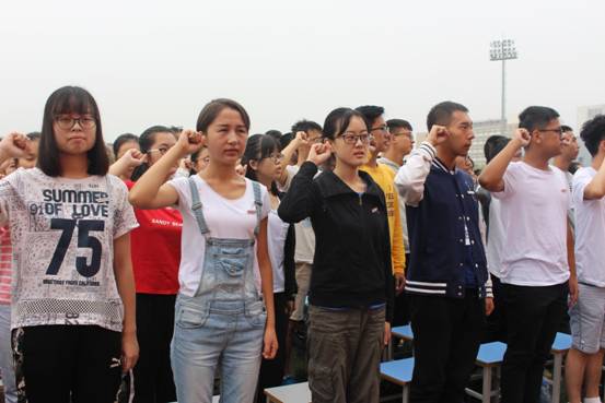 典礼最后一项,全体2017级新生在瞿诗琦同学的领誓下庄严宣誓。
