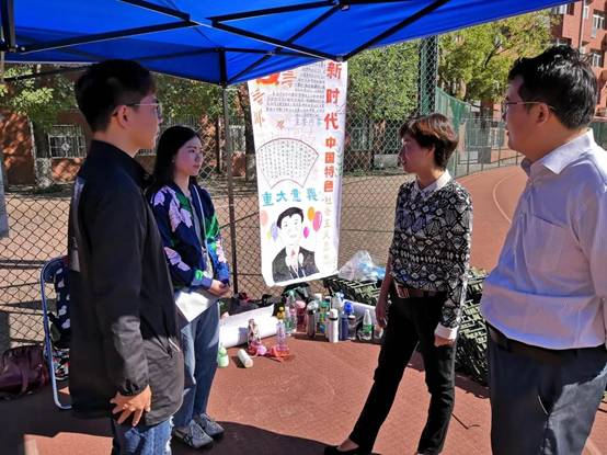 2018年9月21日上午9:30,beat365vip官网登录入口党委书记吕丽老师、党委副书记白云真老师老师来到十营即beat365vip官网登录入口所在的新生营队中考察新生们的训练情况。