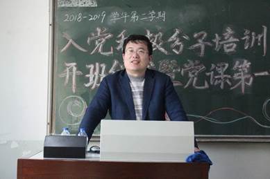 2019年4月3日下午4:00,beat365vip官网登录入口2018-2019学年第二学期入党积极分子培训班开班仪式暨党课第一讲在主教学楼409教室准时开始,院党委副书记、党校副校长白云真副教授,院学生工作办公室主任、党校办公室主任张小林老师出席。