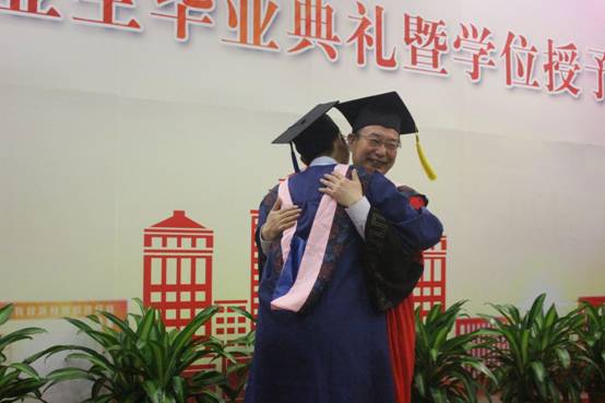 典礼进行第七项,学位授予仪式。在庄严而令人激动的乐曲声中,赵景华院长为2019届毕业生颁发毕业证书和学位证书,拨正流苏,握手并合影留念。深深鞠躬,感恩您谆谆教导;流苏拨正,愿你前路一片坦荡。