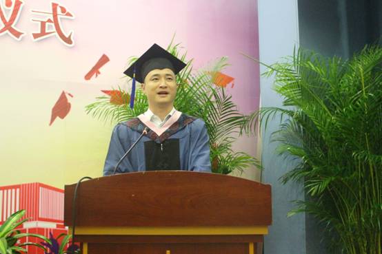 典礼进行第四项,院学位评定委员会主席、院长赵景华教授致辞。赵院长首先对毕业生们圆满完成学业表示热烈的祝贺,对毕业生的父母、师长、亲人和朋友致以崇高的敬意和衷心的感谢!
