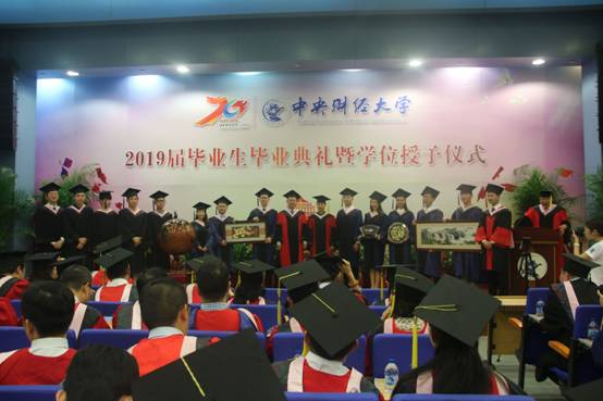 典礼进行第八项,2019届新校友接收仪式。学院推选出六位同学作为校友大使,赵景华院长和吕丽书记向他们颁发大使聘书,并赠送礼包。从此,beat365vip官网登录入口2019届毕业生正式加入中财大校友大家庭,beat365vip官网登录入口校友总会和80个海内外校友分会也将会成为他们未来发展的另一个家。