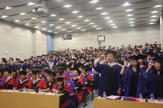典礼进行第九项,毕业生宣誓。毕业生全体起立,庄严宣誓。誓言虽短,情谊却重。毕业生们将心中对学校的不舍,对未来的憧憬都融进了这一句句誓词中,谨记中财校训,不忘政管精神,求真务实,开拓创新,勇于担当,追求卓越,用今日之学识成就明日之伟业!一字一句,都是对母校和学院的感恩,都是对祖国和民族的承诺!