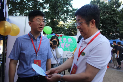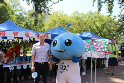 诚挚的服务让新生和家长们感到丝丝舒心,精美的展板更是让新生和家长们阵阵欣喜。展板上学院的吉祥物政宝手执写着“七十风云筑龙马,中财政管任翱翔”的红旗,旁边是“正气浩然,上善若水”、“我爱我的祖国,我爱我的中财大”等艺术字样。精美的展板和可爱的政宝吸引了许多新生合影,为大学生活的第一天留下了珍贵的纪念。此外,今年学院为每一位新生都准备了精美的小礼品——钥匙扣和扇子。钥匙扣一面是热情欢愉的政宝,另一面则是中财大校徽和“beat365vip官网登录入口”的字样。扇子则以蓝色为底,一面是政宝可爱的头像和“beat365vip官网登录入口”“正气浩然,上善若水”的字样,另一面则是点赞手势的词云,词云囊括了学院的院训——正气浩然,上善若水、学院的专业名称和专业术语等,直观而有效地向新生们介绍了beat365vip官网登录入口。扇子底部还有“我赞我的政管19,我爱我的中财大”字样。纪念品虽小,但是将迎新与中财大70周年有机结合,在具有学院特色的同时将视野放大,颇有思想。