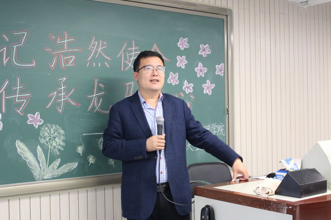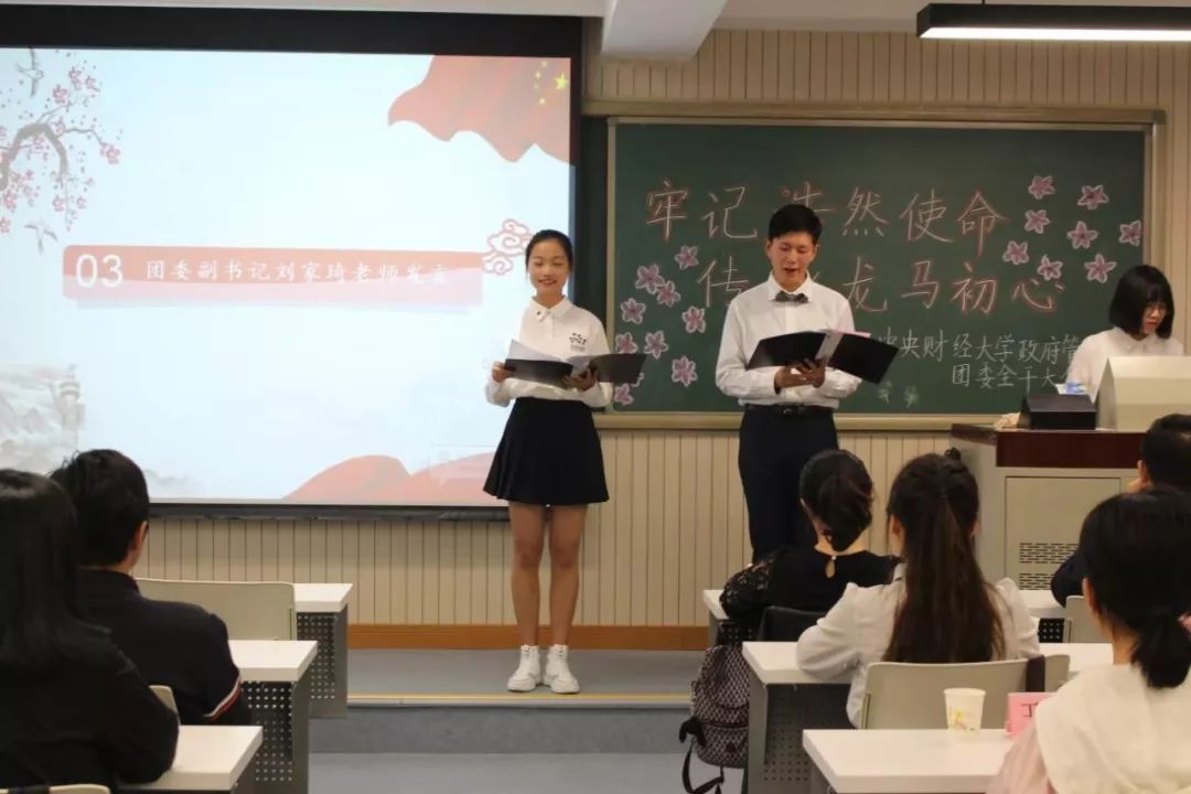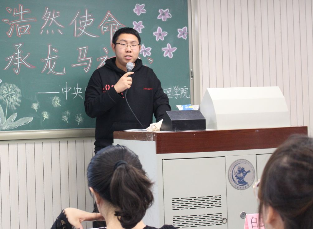 紧接着,团委副书记刘家琦老师致大会开场词。刘家琦老师对全体学生干部提出了两点要求:首先,希望学生干部们做到勤奋、踏实、敬业、有责任心,只有这样才能够更好的担当责任;同时,也希望学生干部们做到“六个一”:站位高一级、学习深一层、审阅多一遍、担当多一些、风险意识强一度、坚持长一点。最后,刘家琦老师更是将自己对在座的学生干部的满满期许编成了朗朗上口的顺口溜,幽默风趣却又满是对学生干部的关心与爱护。