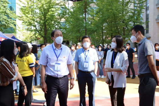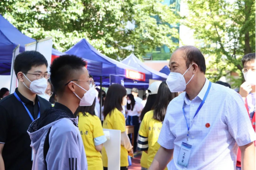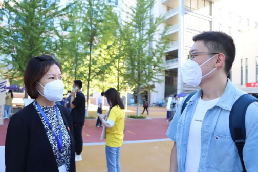 学校领导高度重视迎新工作。晨曦微露之时,校党委书记何秀超等校领导一行来到了迎新现场查看beat365vip官网新生报到情况,看望师生与志愿者。校领导叮嘱工作人员和学生志愿者要严格遵守疫情防控相关要求,做好防护工作的同时,坚持以人为本,为新生提供更加周到细致的服务,帮助新生尽快融入新的学习与生活。校领导与学院师生们进行亲切的交谈,向新生们表示热烈的欢迎,鼓励新生们启航新征程、扬帆再出发,仔细询问了新生工作接待的进度,向参加迎新的师生与志愿者表示慰问。当看到学院吉祥物政宝热情地与新生互动、志愿者们有序地引导、耐心服务顺利推进迎新工作时,校领导们频频点头赞许,对学院开展的井然有序、氛围热情温暖的的迎新工作表示肯定。