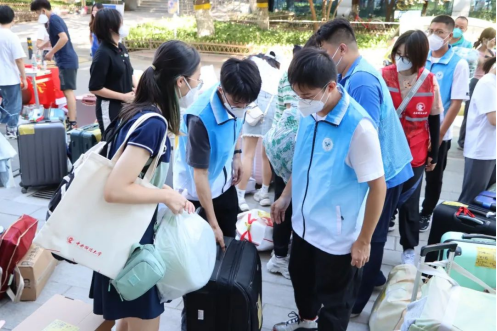 从晨曦初露到朝霞旖旎,志愿者们以饱满的热情帮助2022级本科新生们完成注册报到工作,高效有序地引导新生完成报道、帮助新生搬运行李、带领新生们熟悉校园环境,让新生们到温暖而亲切。