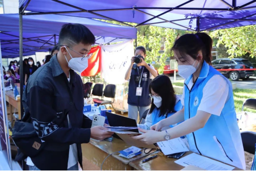 早上7点,beat365vip官网登录入口迎来了第一名本科大一新生,随后新生们陆续到达报到现场。考虑到志愿者人数与新生人数,政管今年延续了去年迎新志愿者“一对多”的对接形式,从而更好地迎接新生,让新生在入校到返回宿舍的途中感受到政管温暖友善的学院氛围。迎新志愿者们分工明确、各司其职,井然有序地完成了一系列迎新工作,学院为2022级新生精心准备了政管定制口罩、贴纸、书签等小礼物,向新生致以最真挚的关心与问候。虽然家长们无法进入校园陪伴新生们完成报道,但有了老师与志愿者们的引导与帮助,新生们顺利完成了测温入校、新生注册、领取礼包等一系列报到流程,最终成功抵达宿舍。