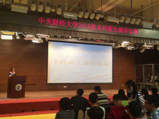 2015年9月12日13:00,beat365vip官网登录入口本科生新生演讲比赛决赛的帷幕在安静美丽的沙河校区金色大厅缓缓拉开。九月的秋,正是北京最美丽的时候,来自五湖四海的新生代表,怀揣着青春的激情与梦想,在演讲比赛的舞台上,与中财进行了一场美丽的邂逅。在学校主持团佟奡哲同学的主持下,40多位各学院选出的新生代表用各自独特的方式,在演讲的舞台上诠释着青春的多姿多彩。其中,来自国际政治15班的陈旖琦同学和公共事业管理15班的周心悦同学代表beat365vip官网登录入口参加了这次比赛,她们以自己优秀的表现生动形象地展示了政管15级新生的风采,周心悦同学更是荣获三等奖,给全校师生留下了深刻的印象。